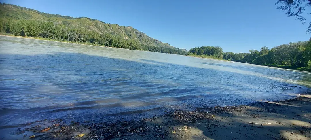 Панорамный вид на горы, лес, реку Катунь.
