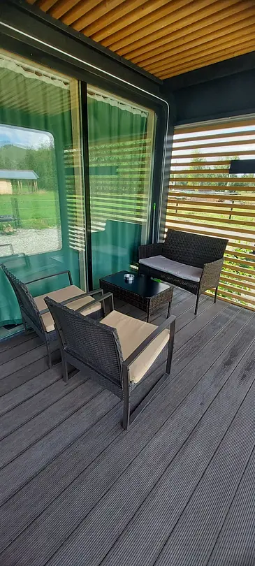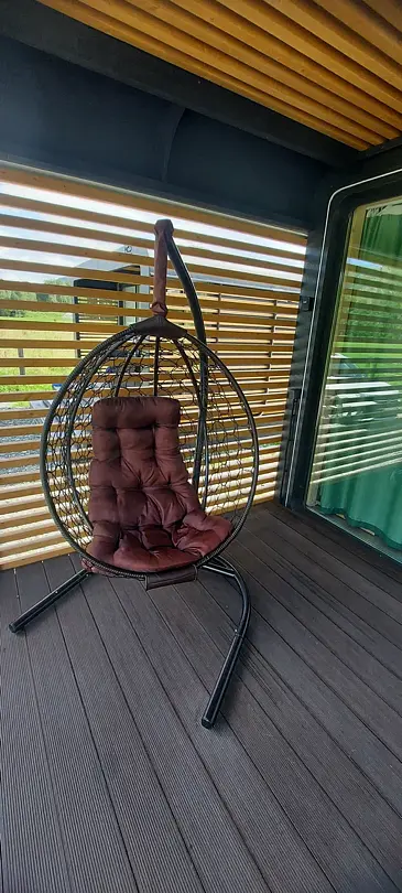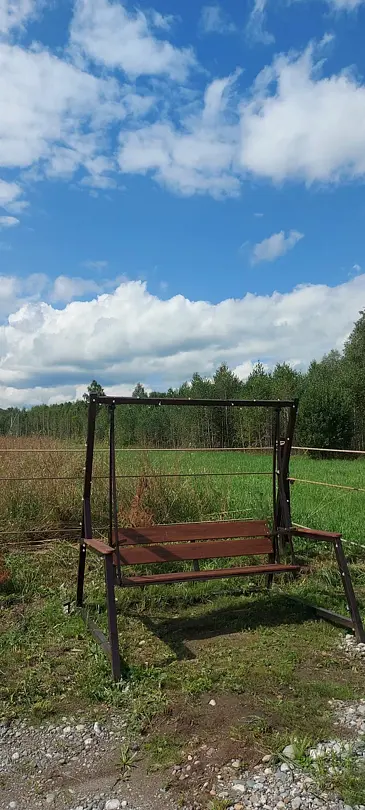 Терраса с мебелью и качелями. Мангал.