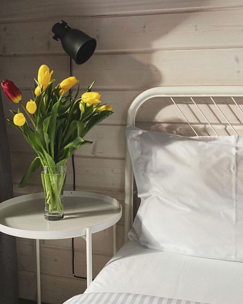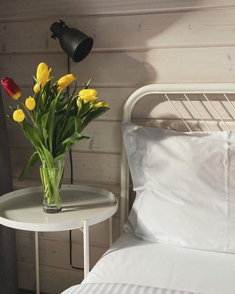 В доме есть двуспальная кровать, полотенца, телевизор. На кухне — микроволновая печь, электрочайник, холодильник. Посуда — четыре предмета на персону, столовые приборы, нож, разделочная доска, стаканы, кружки, штопор.