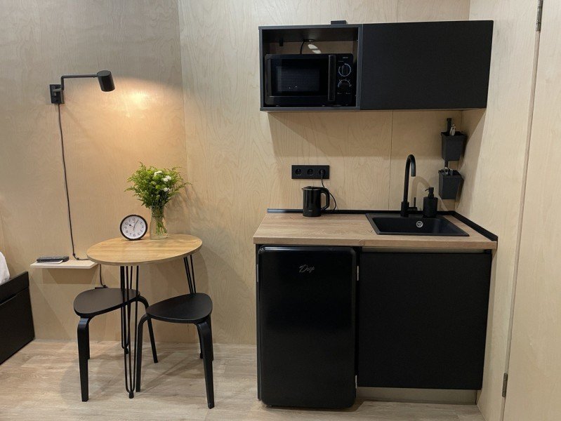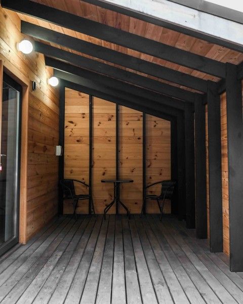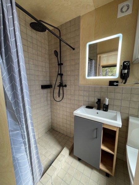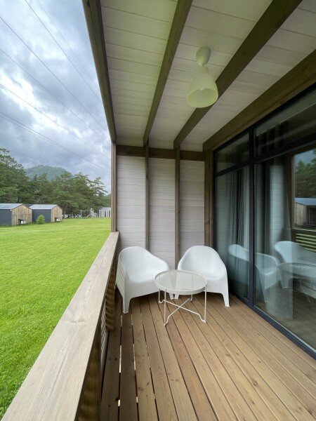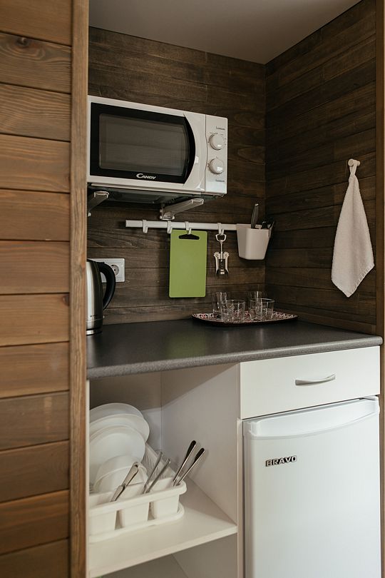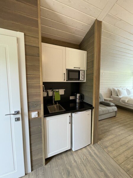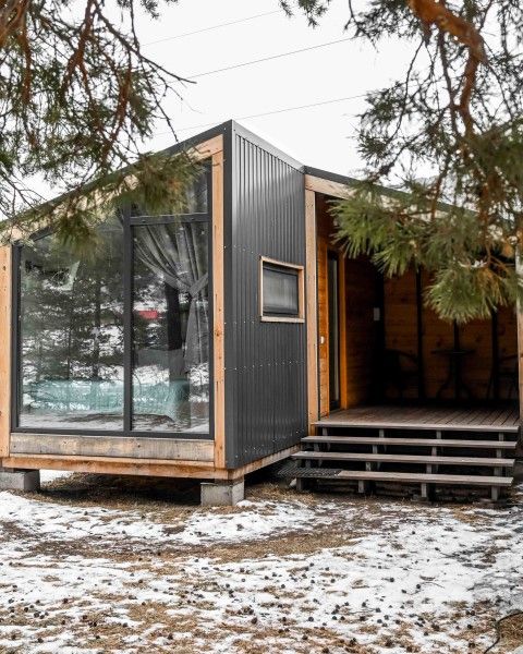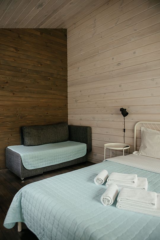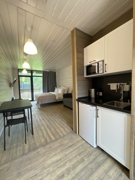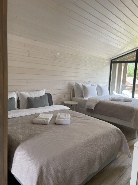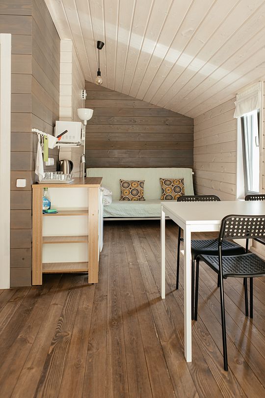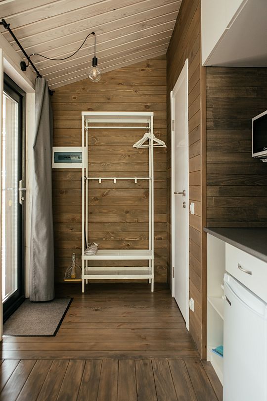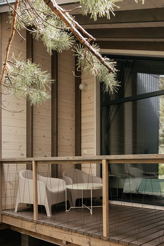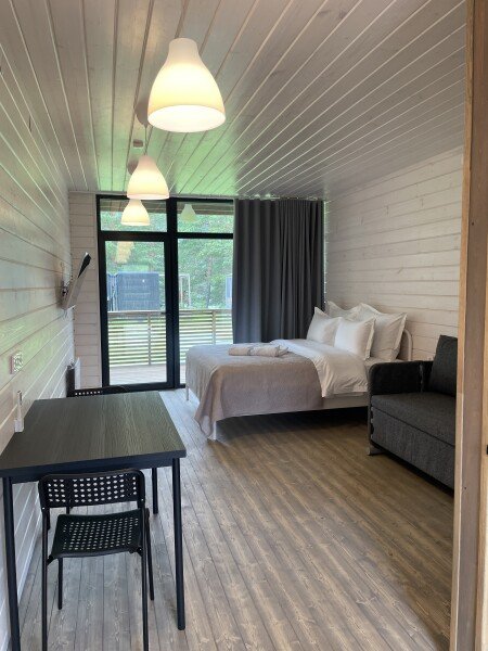 Глэмпинг предлагает четыре стиля домиков, расположенных на первой береговой линии. Интерьеры выполнены в дизайнерском стиле с использованием натурального дерева, что создает атмосферу тепла и домашнего уюта.