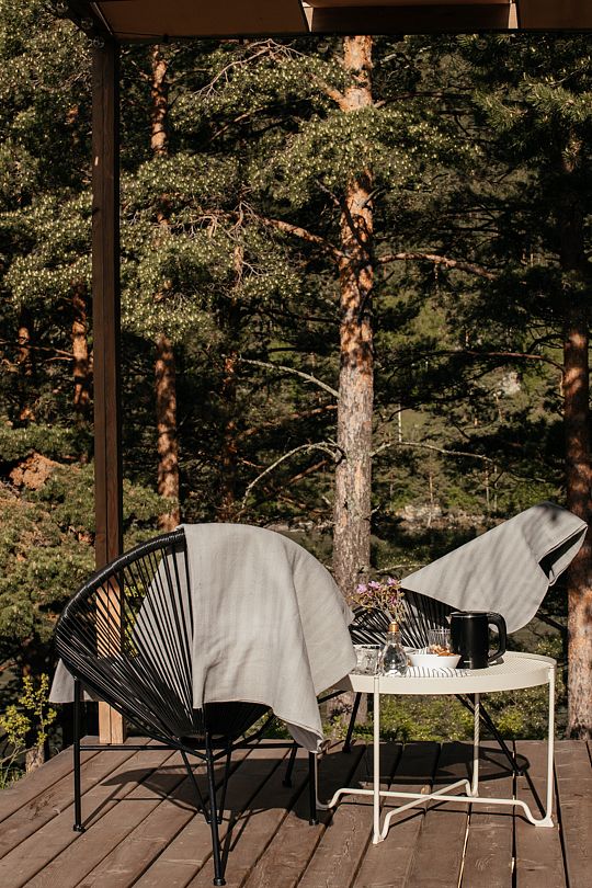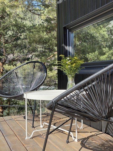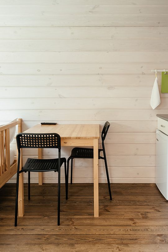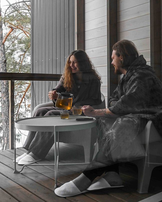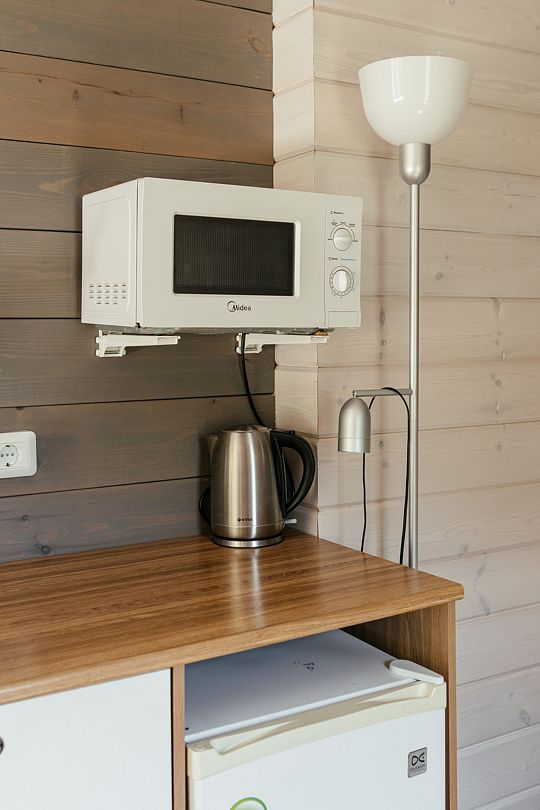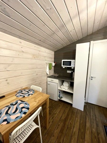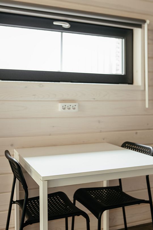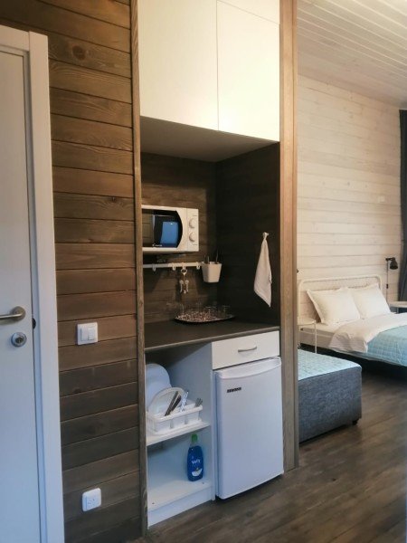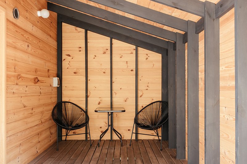 Дом с террасой рассчитан на проживание двух-трех человек (два основных места и одно дополнительное). В стоимость включено двухместное размещение. Дети до трех лет без предоставления места размещаются бесплатно.
