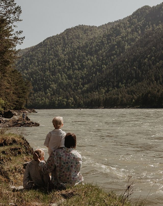 Дом для всей семьи с двумя панорамными окнами на Катунь. В доме двуспальная кровать, диван, двухъярусная кровать, телевизор, полотенца по количеству гостей. На кухне микроволновая печь, электрочайник, холодильник.