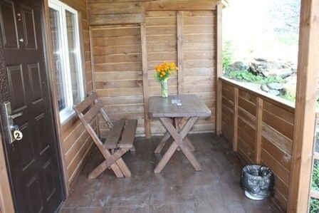 - Веранда со столом и скамьей.