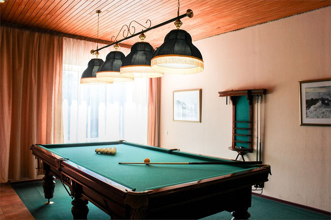 Уютное место, где можно поиграть в бильярд. Рядом находится ресторан с разнообразием блюд и напитков.