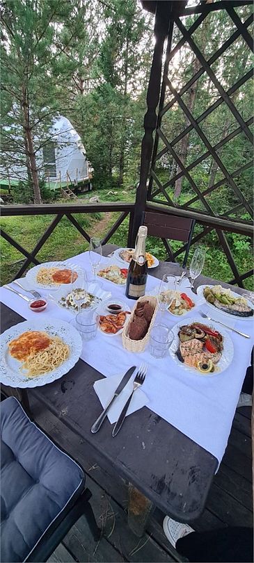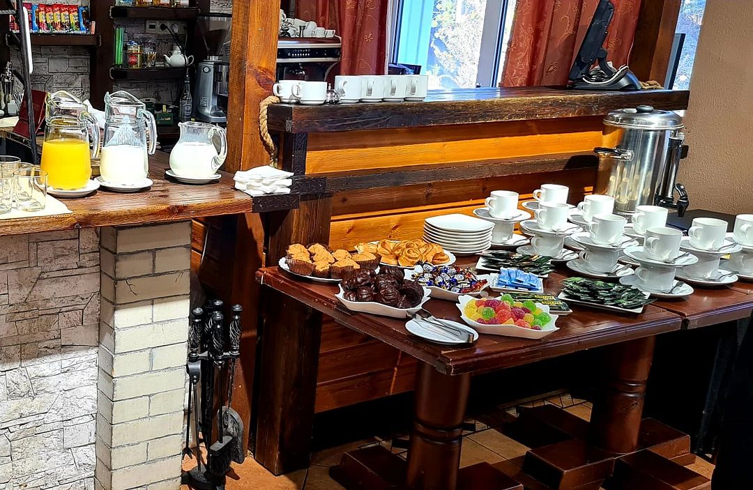 Гостеприимное кафе в гостинице «Артыбаш» рассчитано на 45 мест, и готово предложить великолепие и удовольствие вкуса исключительно из ЭКО-продуктов Алтая.