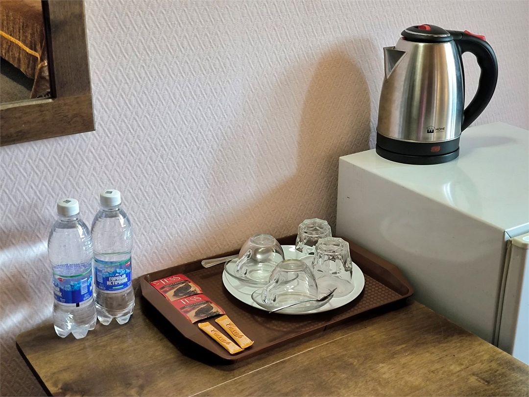 В номере: 2 раздельные кровати, телевизор, фен, прикроватные тумбы, вешалка передвижная, лампа для чтения, холодильник (в номерах с дополнительными местами), чайник и чайные пары, предметы гостеприимства.