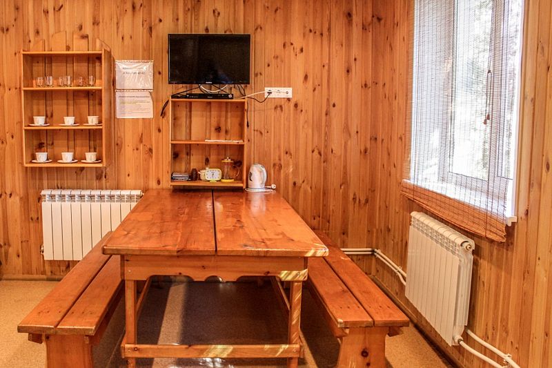 Баня расположена на крутом берегу Бии. После жаркой и просторной парилки можно облиться ушатом ледяной воды. Для любителей посидеть на улице есть беседка с видом на реку. Комната отдыха рассчитана на 6 человек.