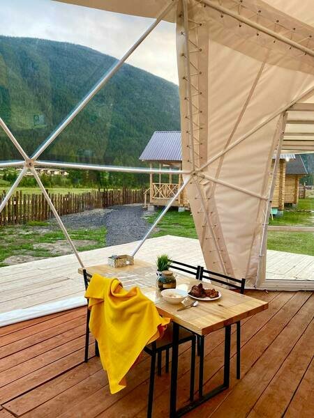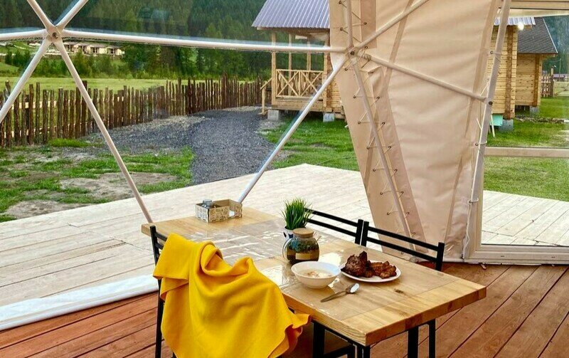 Читать полностьюНа территории базы отдыха расположено стильное купольное кафе, где представлены блюда тюркских народов, так же имеются традиционные привычные блюда русской кухни.