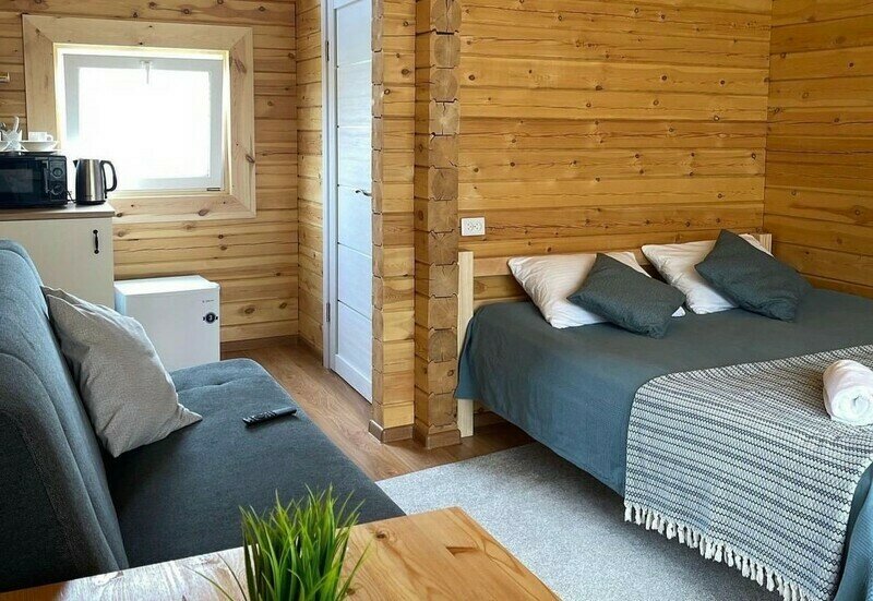 Для размещения предлагаются отдельно стоящие дома, построенные из экологически чистого материала, наполненные теплом и ароматом кедра. Жилой фонд представлен 6 номерами – два номера люкс и четыре комфорт. Уютные номера обладают современным лаконичным дизайном, оснащены всем необходимым для качественного отдыха – установлены двухспальные кровати, мягкая мебель, оборудована кухонная зона, индивидуальный санузел с душем. Большие панорамные окна домов, терраса и собственная мангальная зона позволяют наслаждаться красотой природы и живописными видами.