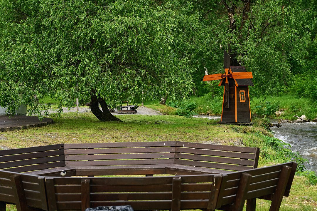 Приготовьте сочное мясо или овощи в специально оборудованном месте на берегу реки. Также для вас возле мангала есть столы и лавочки