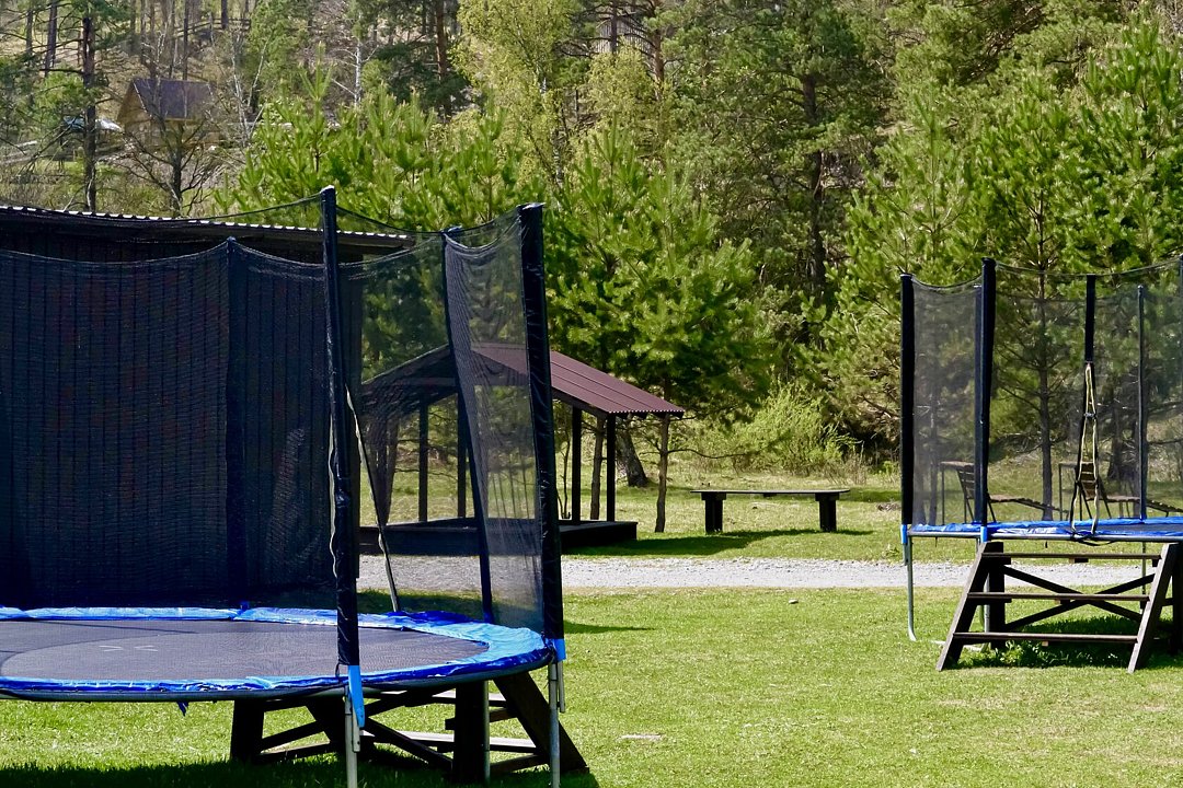 Для детей несколько батутов, качели, гамаки, классные велосипеды, мини-библиотека, настольные игры.