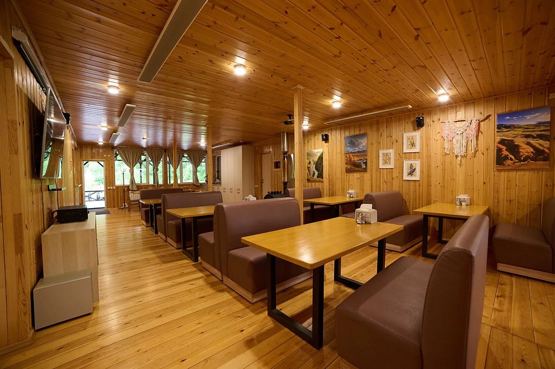 Вкусный завтрак, сытный обед или атмосферный ужин в просторном кафе-столовой на территории.
