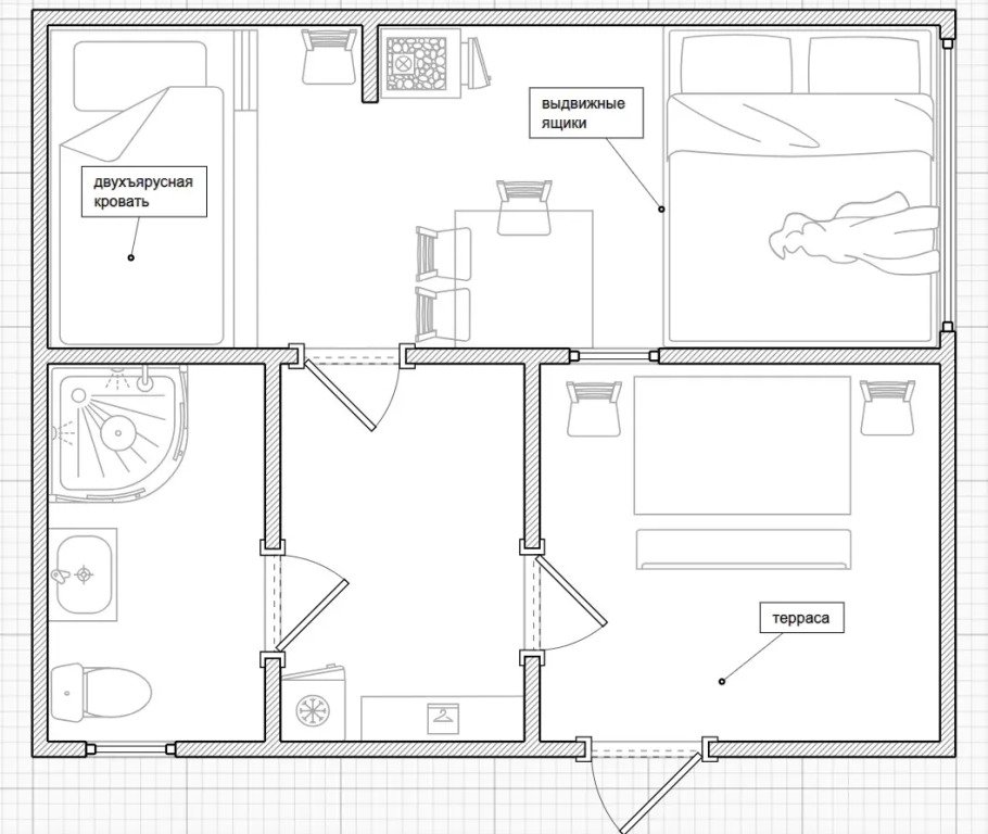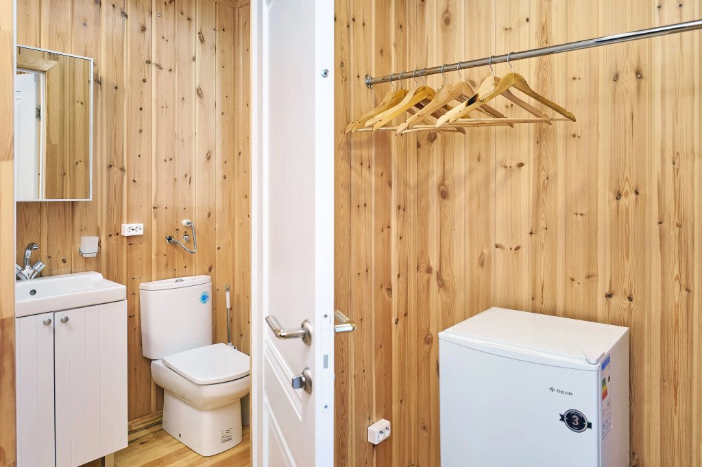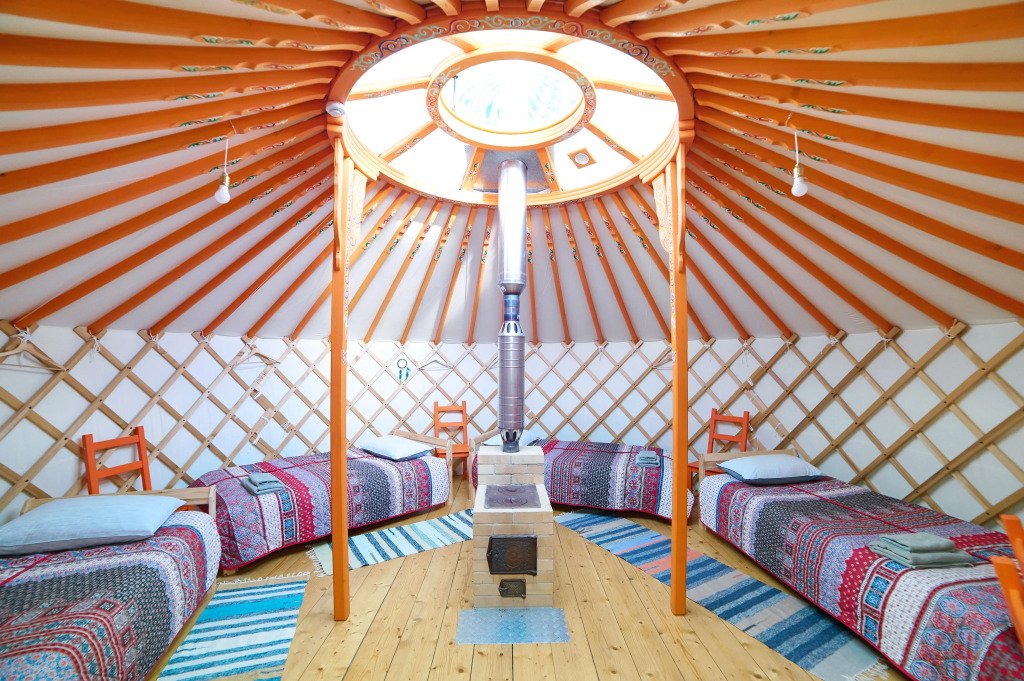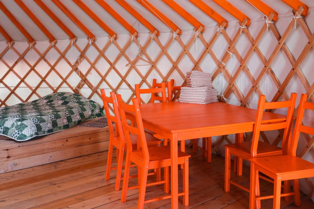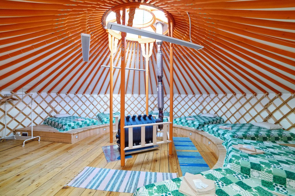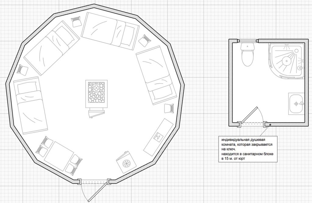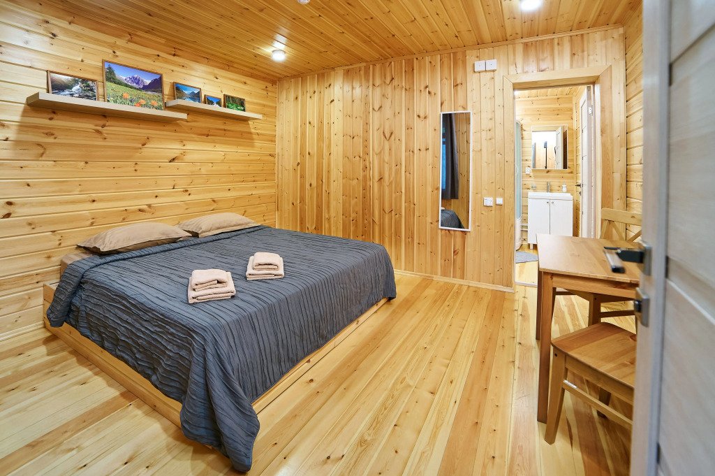 Домики разных типов и юрты. Свежая мебель, добротная сантехника.