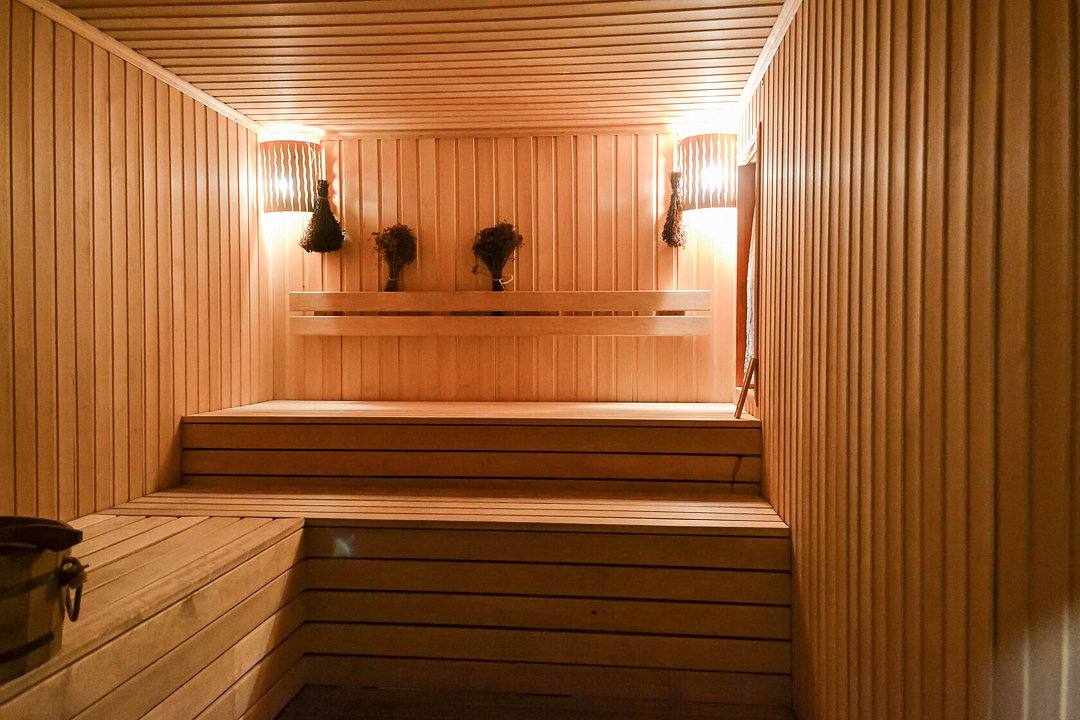 Вы можете посетить сухую, горячую сауну и расслабиться в комнате отдыха. Сауна без веников. Вместимость 8 человек.