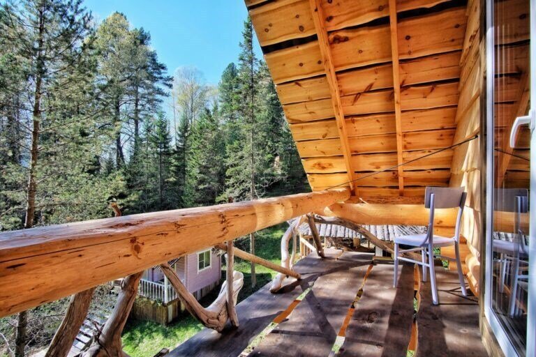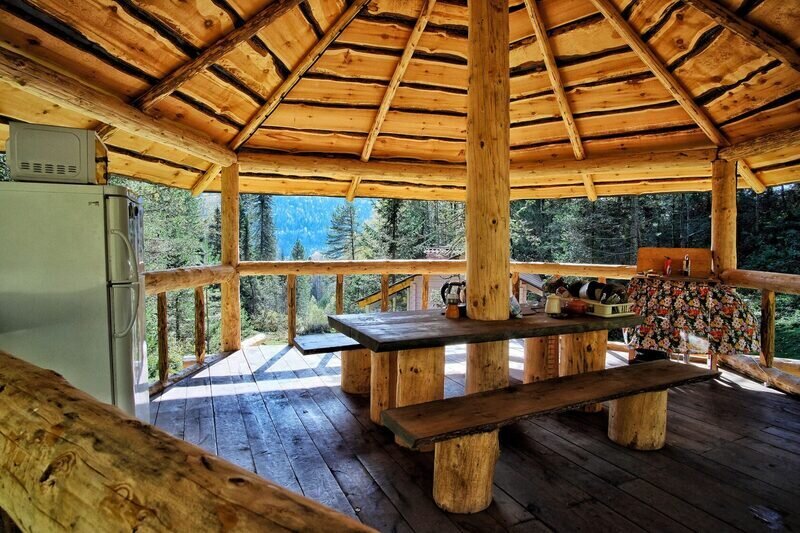 Путешествие с семьейОтзыв о проживании на турбазе Баба ЯгаТурбаза расположена на склоне горы, в лесу, соответственно, для того, чтобы подняться в кафе, общую кухню или выйти на дорогу нужно приложить ряд усилий. Домики расположены изолированно друг от друга, из которых открывается прекрасный вид на Алтайские горы и лес. Проживание в домиках на любой вкус и кошелёк, цены от 2 до 13 тысяч рублей. В некоторых домиках установлены печки-буржуйки, что позволяет их растапливать утром и вечером, создавая романтическое настроение. Отдыхать на турбазе лучше без детей, так как крытые склоны могут привести к их падению, что и произошло с одной семейной парой. В кафе на турбазе кормят вкусно, но не так дёшево, хотя следует признать, что значительно дешевле в других кафе на Артыбаше.