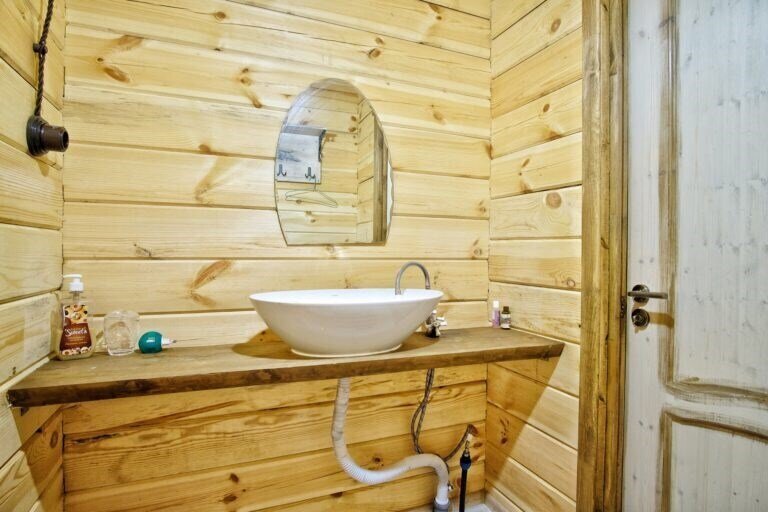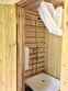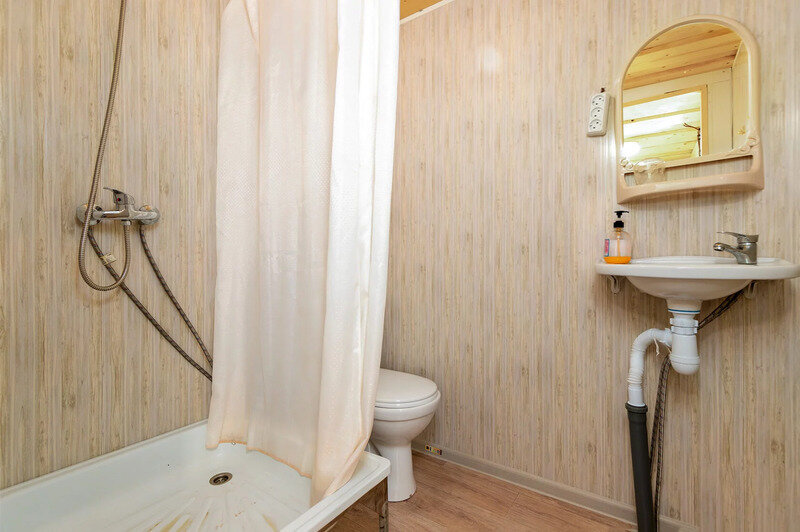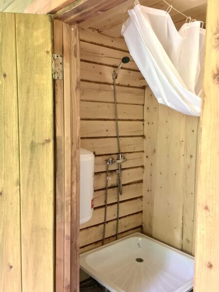 Находясь в лесу, не забывают о комфорте гостей! Тёплый просторный душ — это всегда здорово!