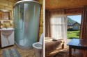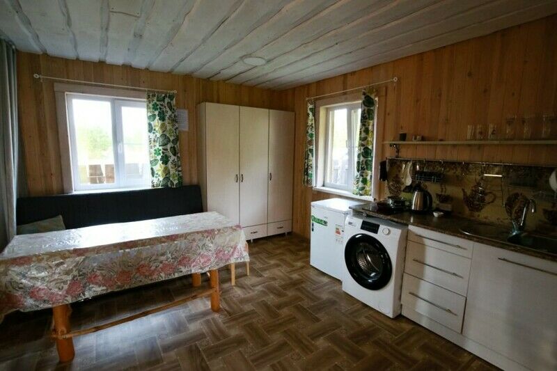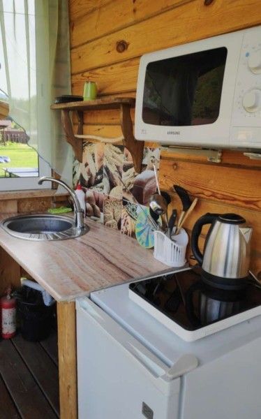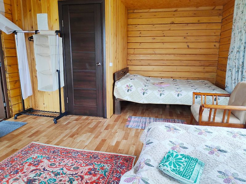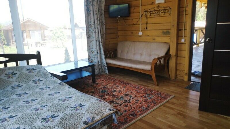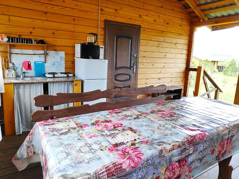 Для размещения на территории базы обустроены уютные деревянные домики с индивидуальным отоплением. В каждом номере индивидуальная ванная комната с душем и феном, кухонная зона с микроволновой печью, посудой, электрочайником. В ряде номеров также установлен холодильник и предусмотрена плита.