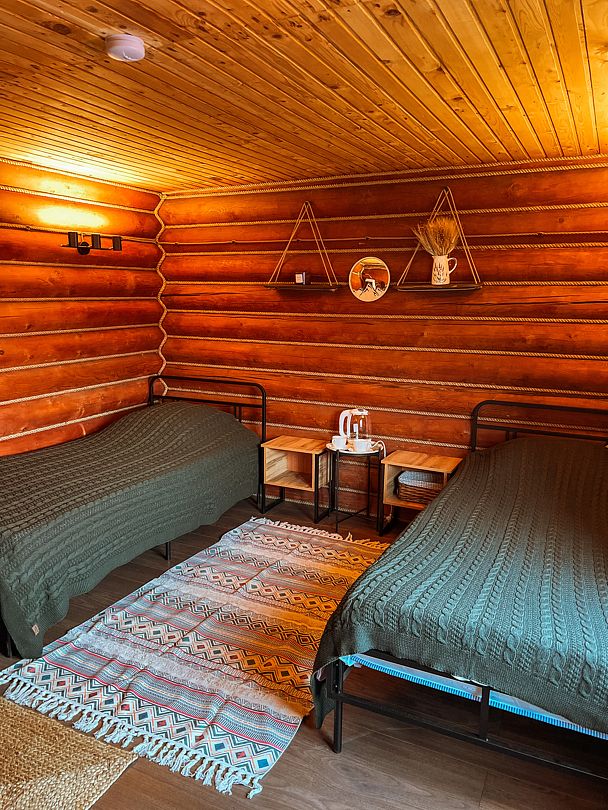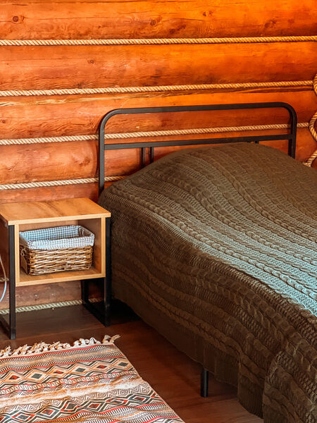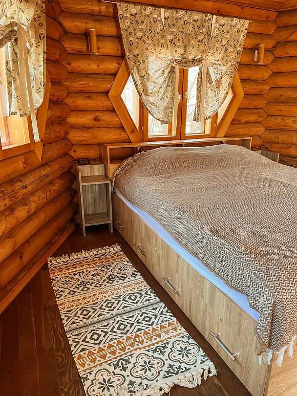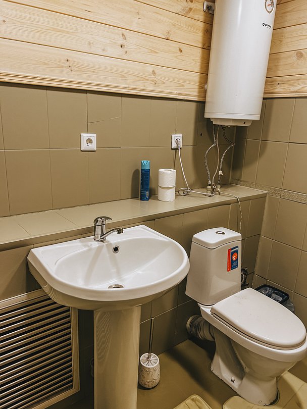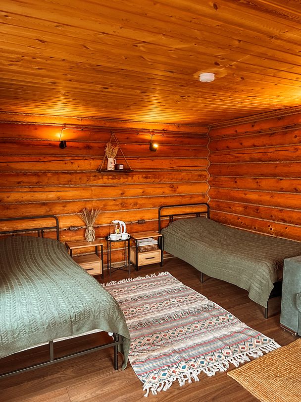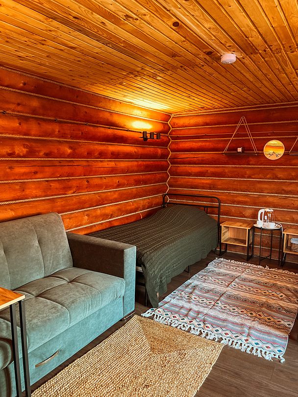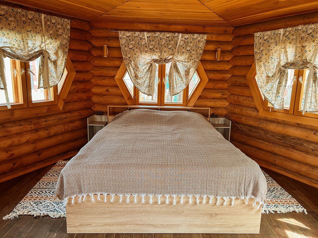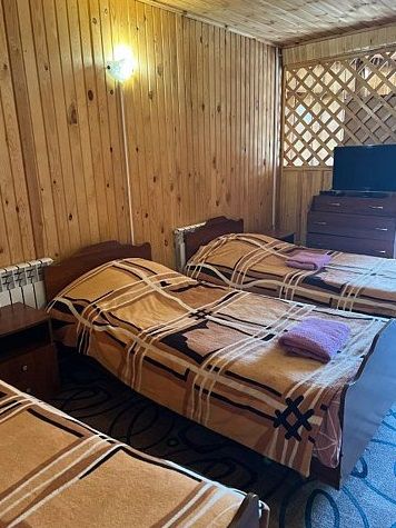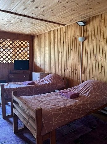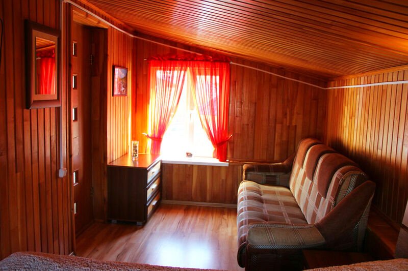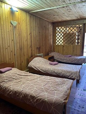 Отдельностоящий двухэтажный комфортабельный коттедж находится на основной территории базы рядом с большим бассейном и баней. В домике можно разместить семью до шести человек.