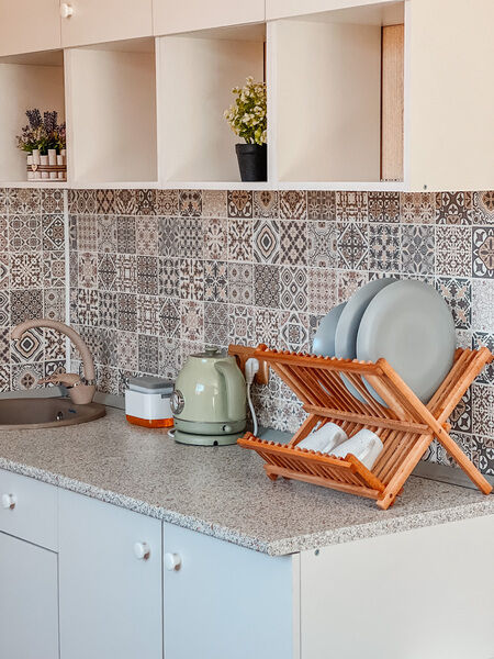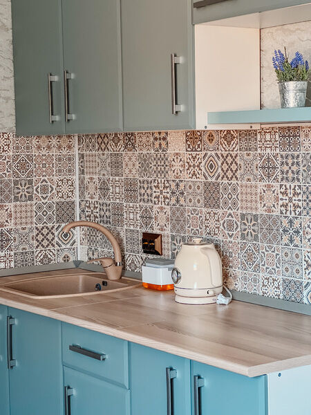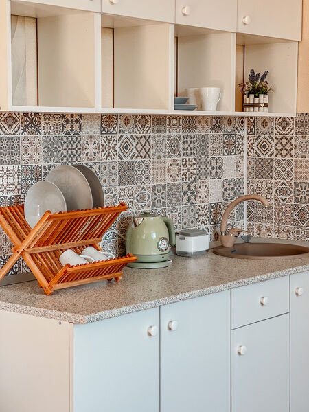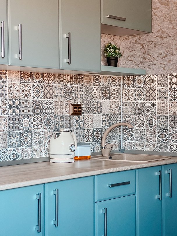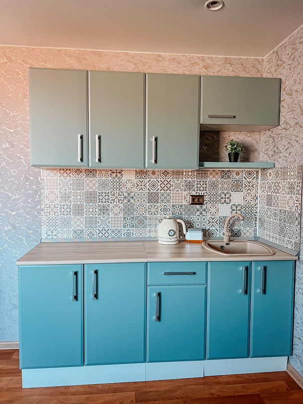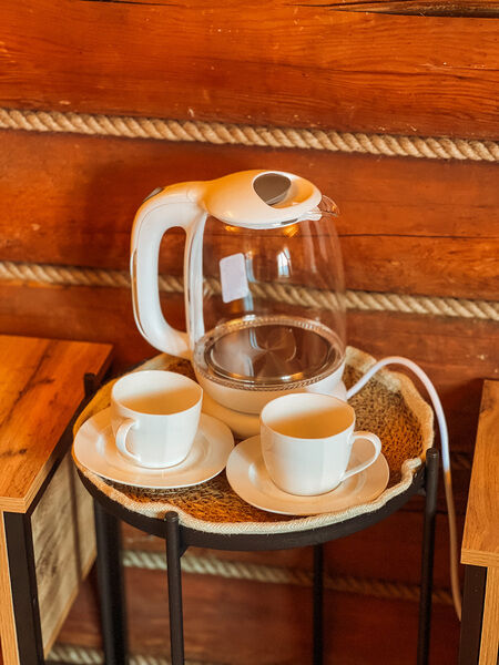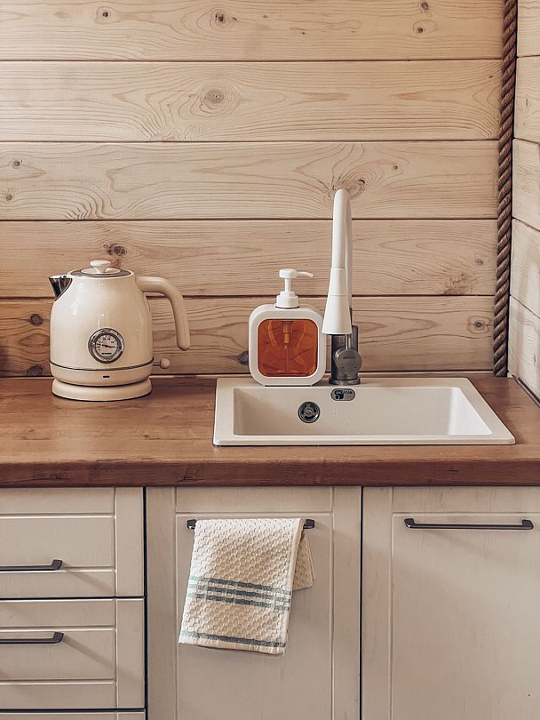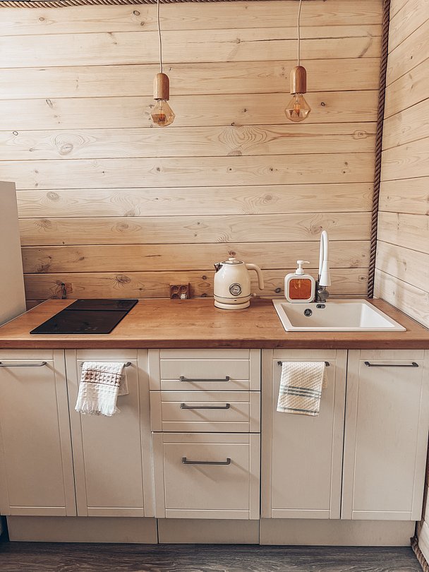 - прикроватные тумбочки, комод, кухонная зона, буфет, чайник;