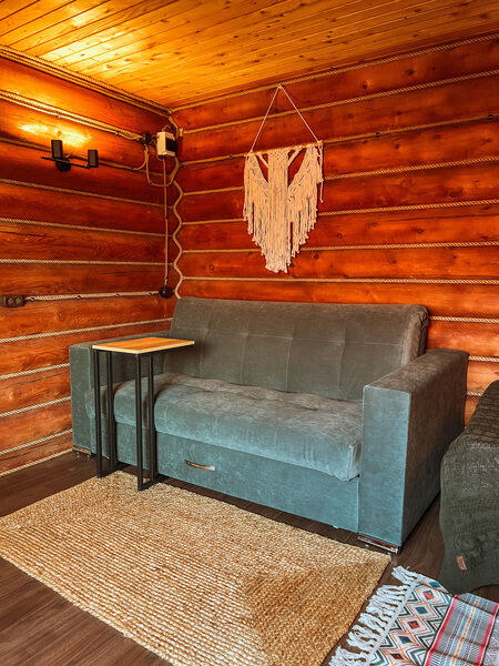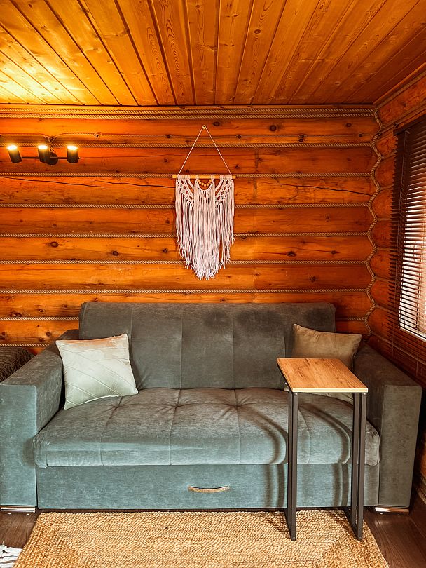 Дизайнерский домик в стиле лофт. Находится на основной территории, рядом с большим бассейном и детской площадкой.