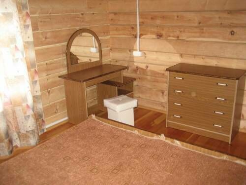 - Двуспальная кровать, раздвижной диван, платяной шкаф, тумбочка, столик, зеркало, телевизор.