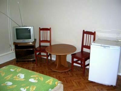 В номере две односпальные кровати, кресло-кровать*, прикроватные тумбочки, телевизор, холодильник, стол, два стула, шкаф для одежды.