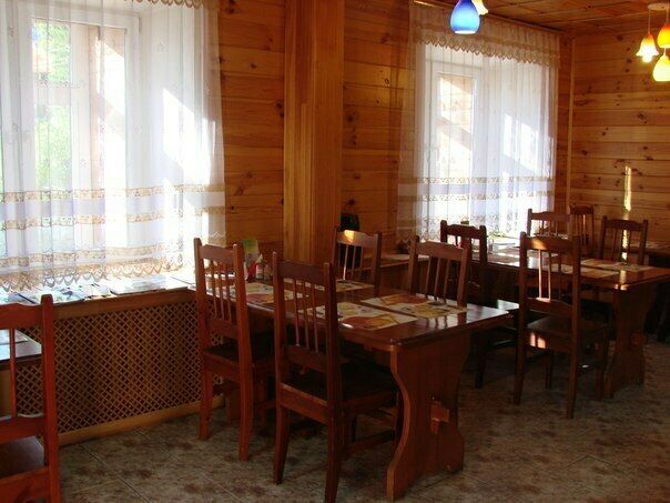 Кафе расположено на первом этаже.Традиционная домашняя кухня. В кафе предоставляется трехразовое комплексное питание. Есть вегетарианское меню.