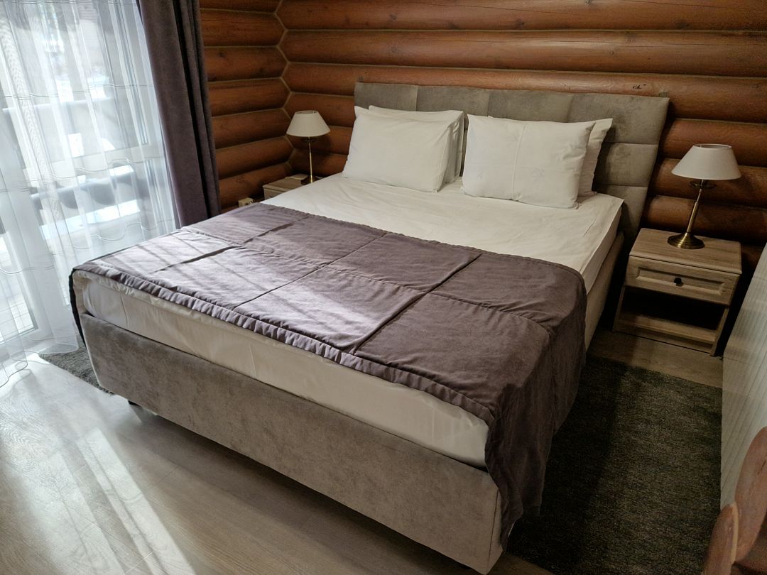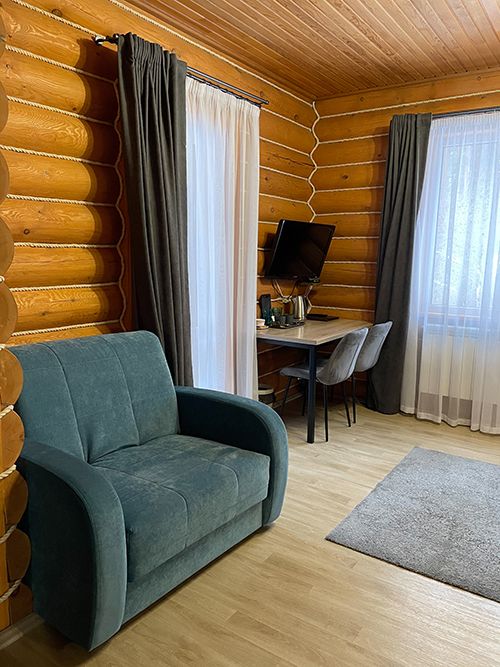 Двухместный номер — 2-х спальная кровать или две односпальные, диван. Имеется необходимая мебель, техника, артезианская вода из скважины. Завтрак включен в стоимость.