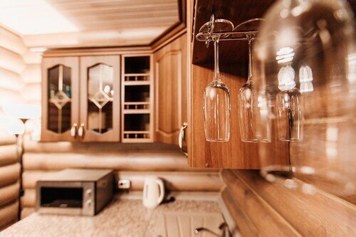 - банкетный зал на 2ом этаже (кухонный гарнитур со всей посудой, чайник, микроволновая печь, холодильник, музыка, диван).