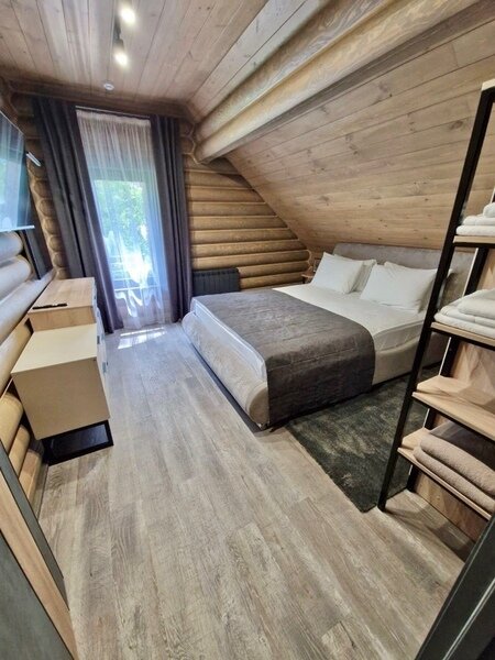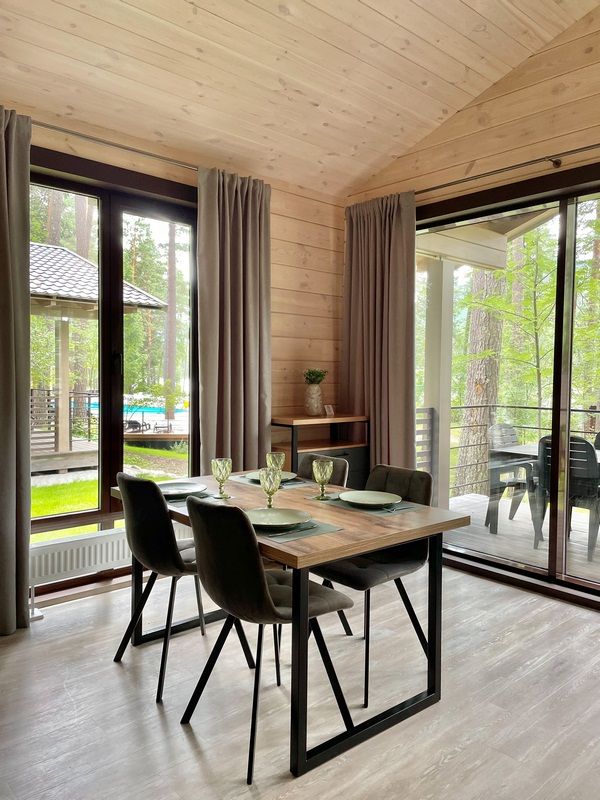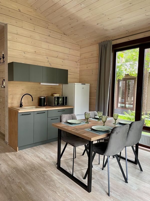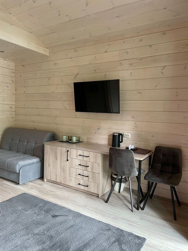 Двухкомнатный дом в стиле шале. имеется необходимая мебель, техника, артезианская вода из скважины. Завтрак включен в стоимость.