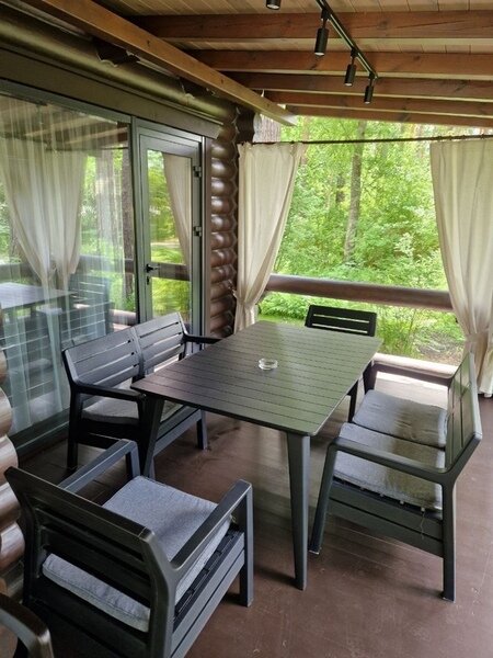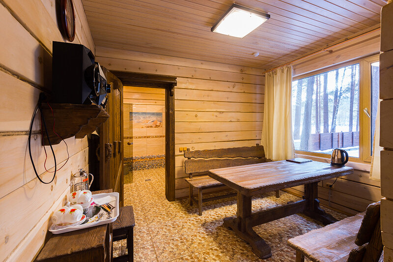 На территории комплекса находится большая 2 - х этажная баня с бассейном и маленькая баня на 6-х человек. К услугам отдыхающих есть место для барбекю, бильярд, настольный теннис. Для детей оборудована детская площадка.