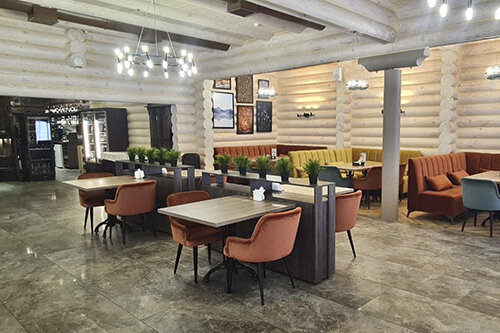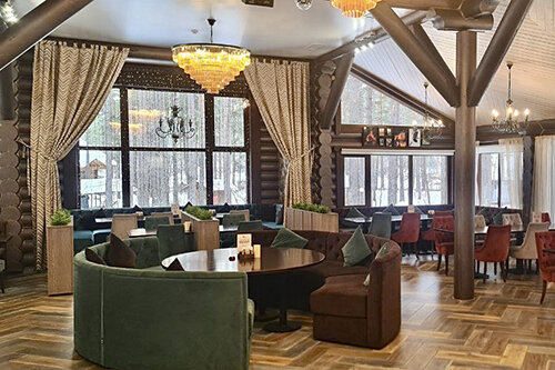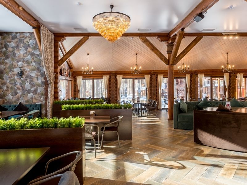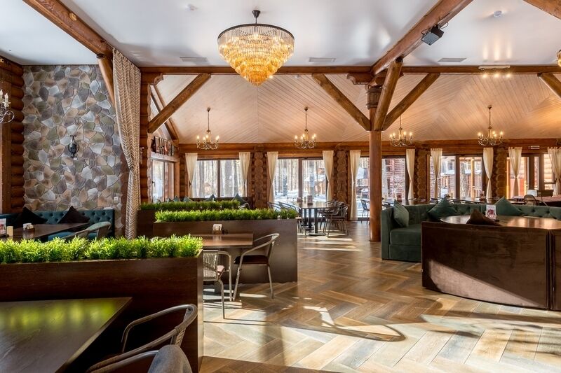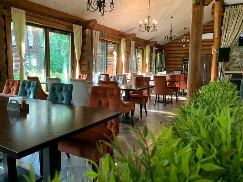 Для проведения различных мероприятии: свадеб, банкетов, дней рождения имеется уютный ресторан с камином на 60 мест и летнее кафе с танцполом на 80 мест . В ресторане предложены блюда русской и европейской кухни, предлагается детское меню.