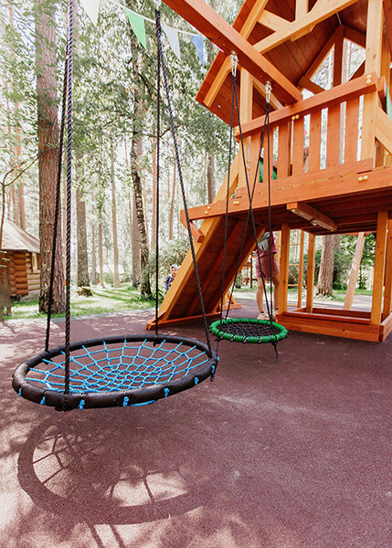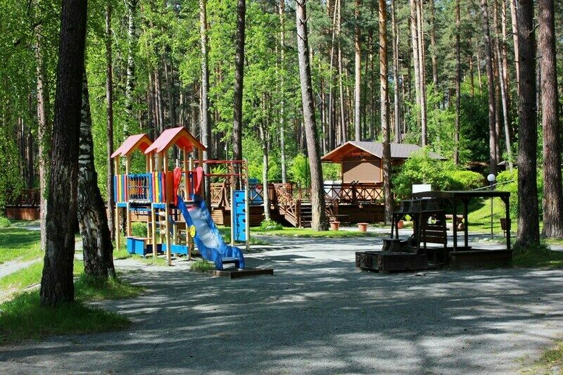 Для активного отдыха детей на территории находится игровая площадка: горки для разных возрастов, песочница, машинка, качели, карусели.