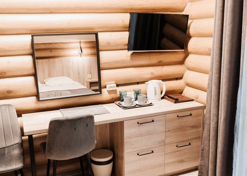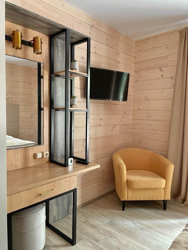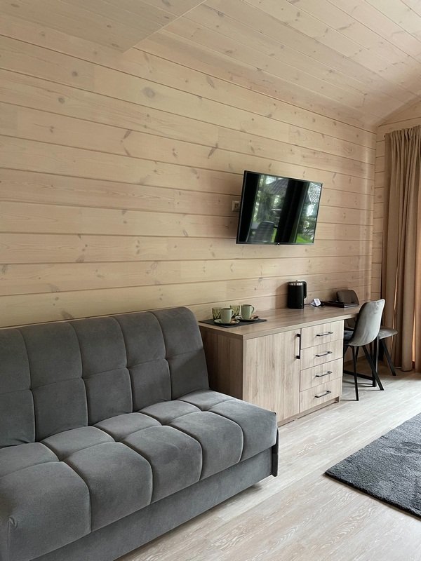 Двухместный номер — 2-х спальная кровать или две односпальные, а также раздвижной диван. Имеется необходимая мебель, техника, артезианская вода из скважины. Завтрак включен в стоимость.