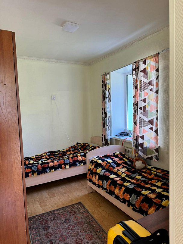 Номер в комфортабельном домике, оснащенном всем необходимым для удобного отдыха: оборудован двумя односпальными кроватями, шкафом, тумбочками, а также имеет душ и туалет на два номера. Чайник, чай и кофе предоставляются.