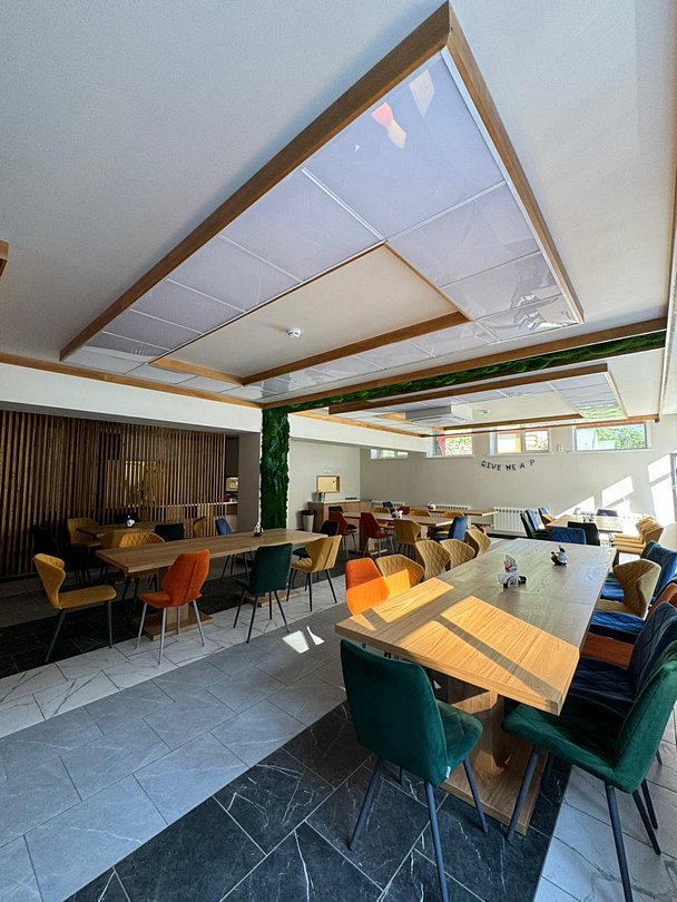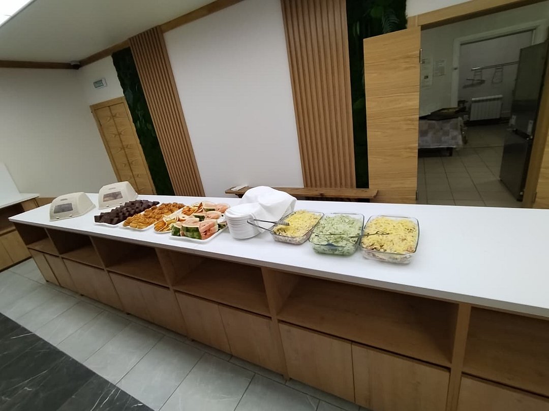 В просторной столовой «Пилигрима» гостей ждет разнообразное трехразовое питание в формате шведского стола. Возможность заказать индивидуальные блюда и организовать праздничные ужины делает пребывание на базе еще более запоминающимся. Для ценителей традиций и расслабления на территории работает настоящая русская баня на дровах, где можно арендовать все необходимые аксессуары для банных процедур.