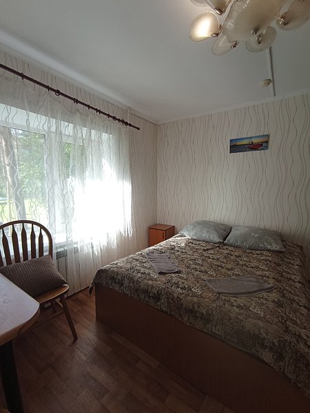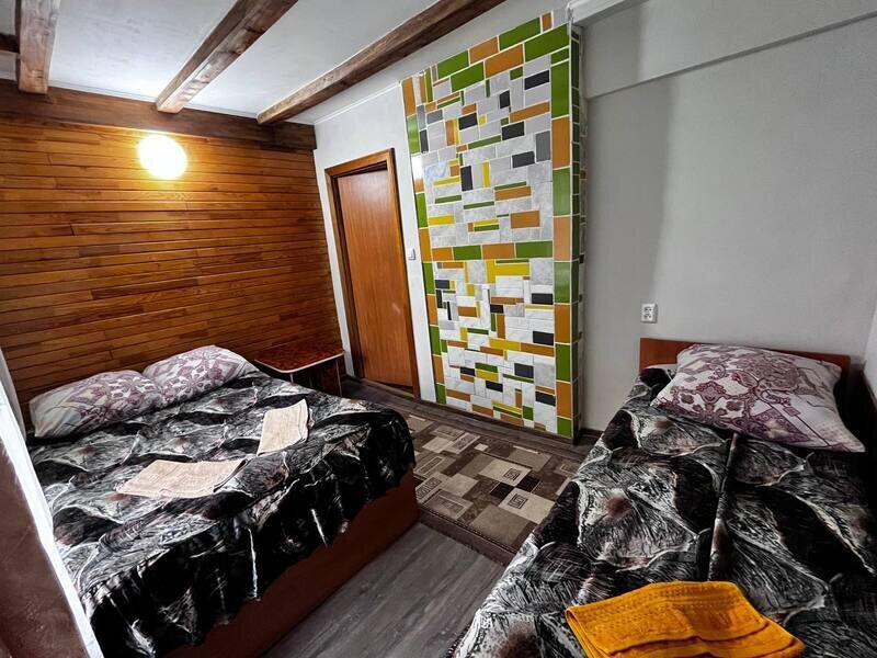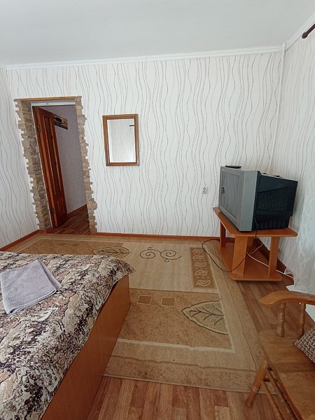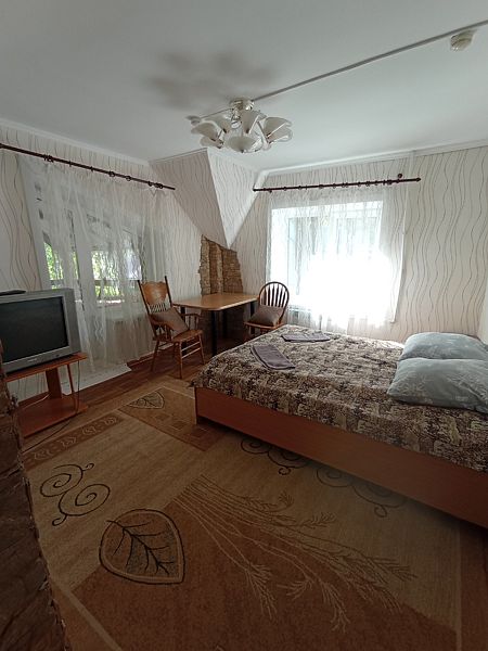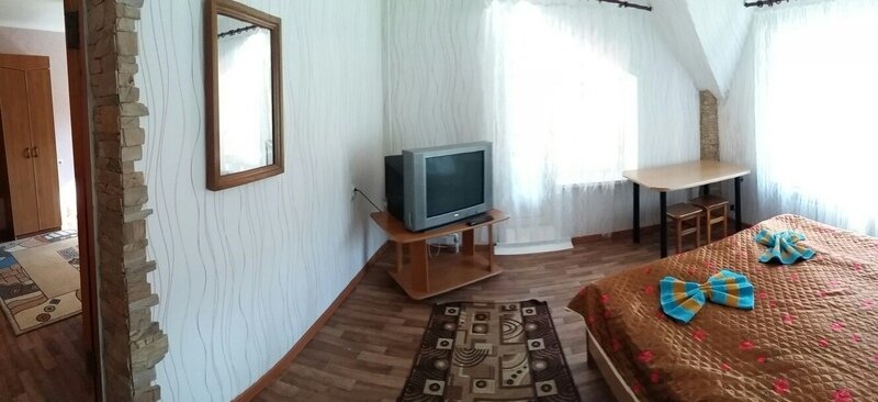 Либо 2 односпальные кровати, либо 1 двуспальная. В 4 номере есть телевизор.