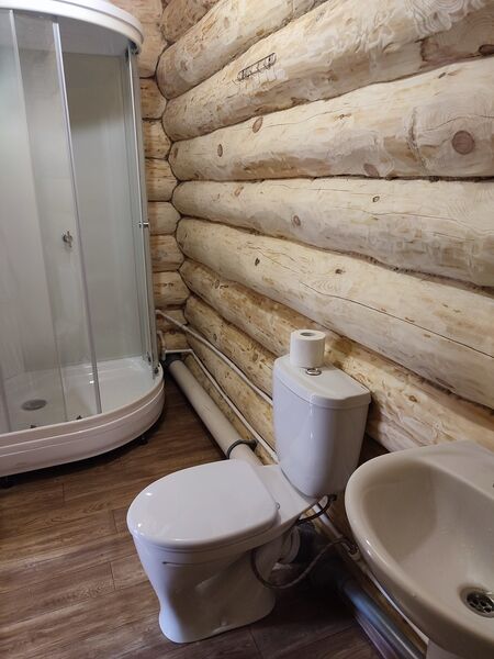 Комфортабельный деревянный домик с 4 номерами, оборудованными душевыми и санузлами, обеспечит вам уютный отдых.