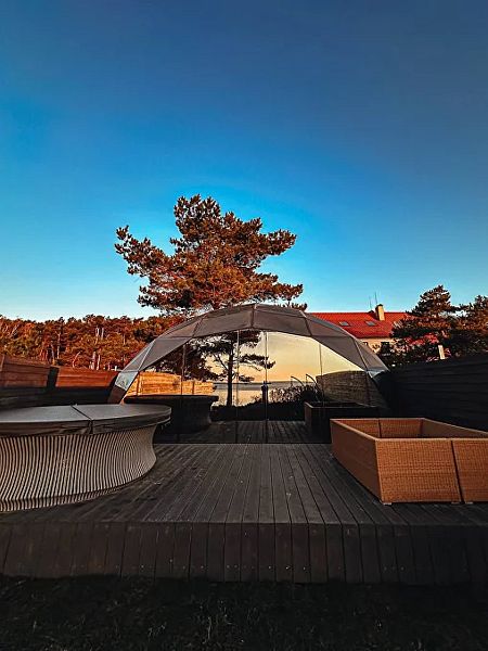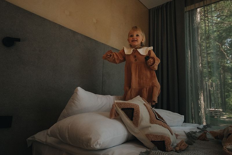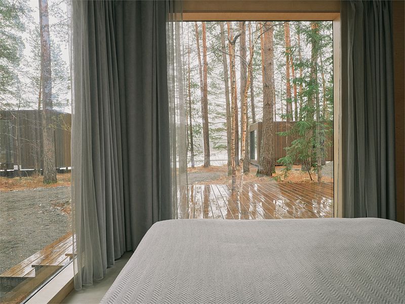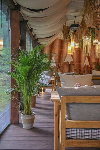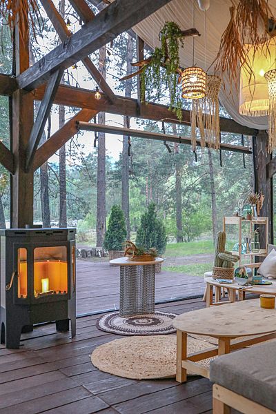 Каждый дом оснащен удобной ванной комнатой, кондиционером, феном, гигиеническими и банными принадлежностями, сейфом, камином и Wi-Fi. Кроме того, у каждого варианта проживания есть собственная терраса с видом на реку или лес, где можно расслабиться на шезлонгах и насладиться джакузи.