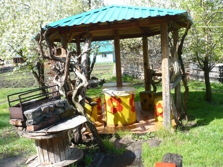 На территории имеется: просторные беседки, оборудованные костровища с мангалами, русская баня, бассейн, оборудованная кухня, детская площадка.