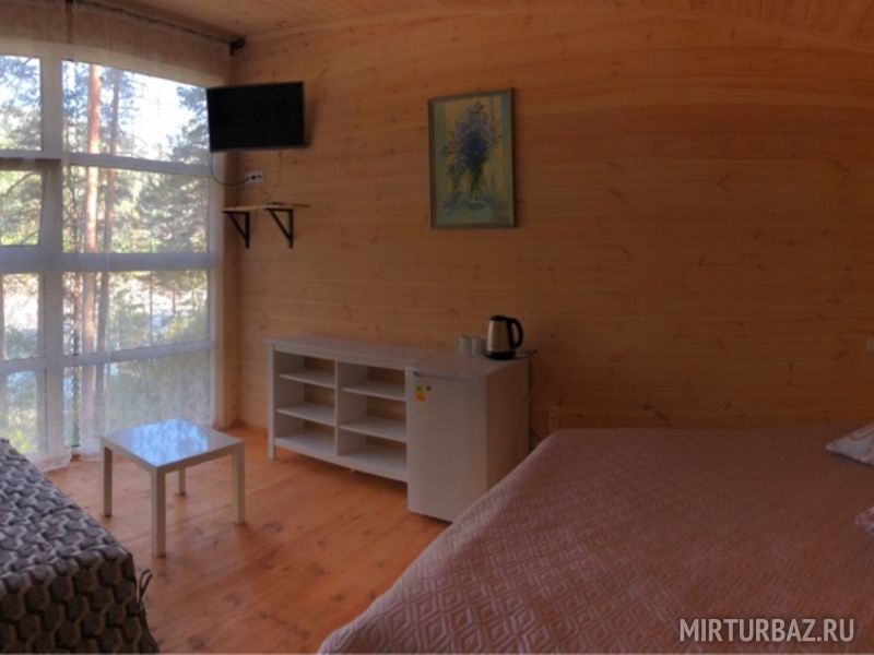 Комната с окном от пола до потолка+WS+веранда с видом на реку 2 основных+2 дополнительных места (диван), минибар, чайный столик, ТВ