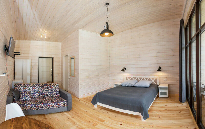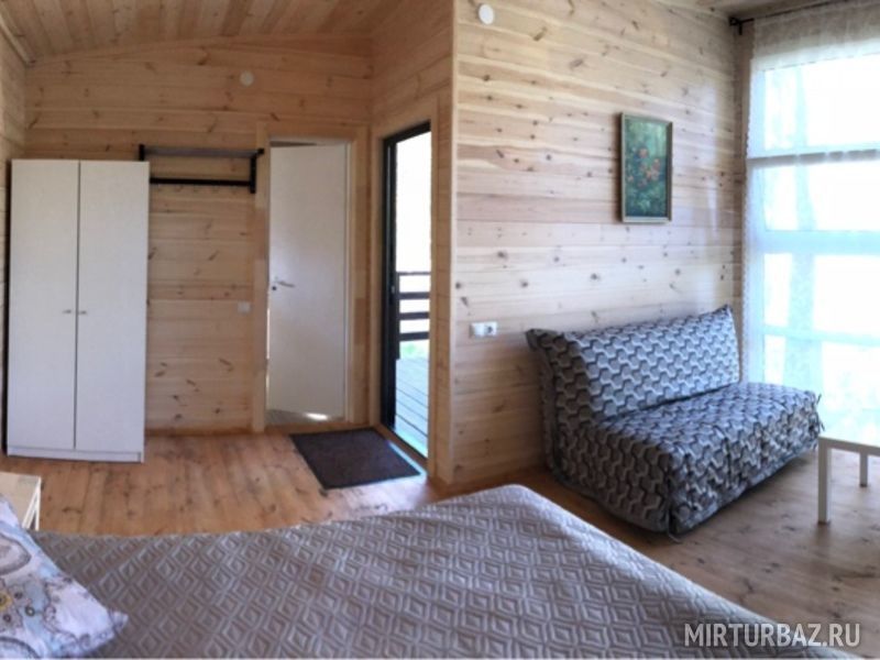 17 кв.м+30 кв.м терраса. Двуспальная кровать, раскладной диван, оборудованная терраса, с/у с душем.