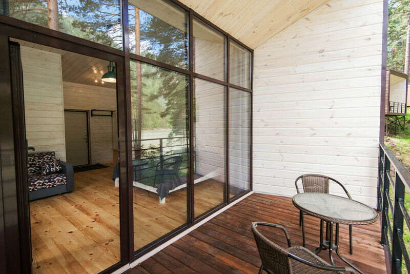 июль 2020 г.Очень антуражноОтличный антуражный отель! Берите обязательно домики с видом на реку. У каждого есть веранда с шикарными видами на Катунь. Номера приятные, но нет Wi-fi. Да и телефон берёт довольно плохо (МТС). Завтрак приносят утром в номер в ланч-боксе. Очень приятно посидеть вечером на веранде в компании друзей. К домикам идёшь по очень живописному подвесному мосту через реку Катунь. Чемоданы можно попросить донести персонал. У основного корпуса есть довольно большой бассейн.