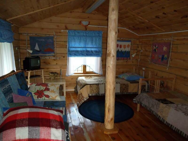 - Имеется 2 односпальные кровати и один двуспальный диван ручной работы.