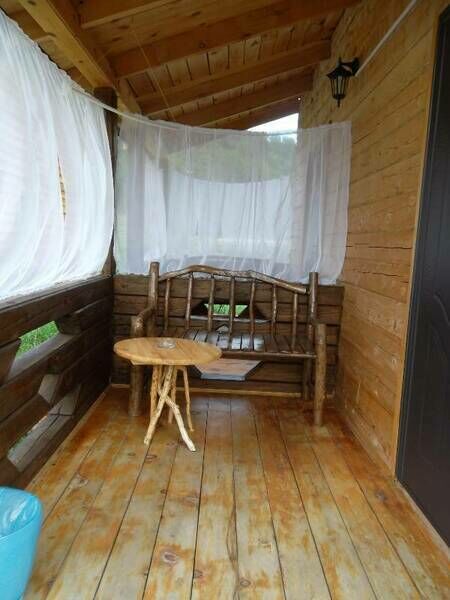 - Большая веранда со столиком и скамейками тоже ручной работы.