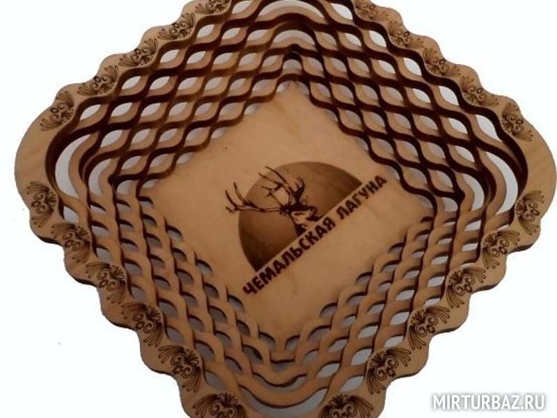 Спортивно-туристический комплекс Чемальская Лагуна предлагает сувенирную продукцию, сделанную при помощи лазерной резки и выжигания лазером, из натурального кедра.