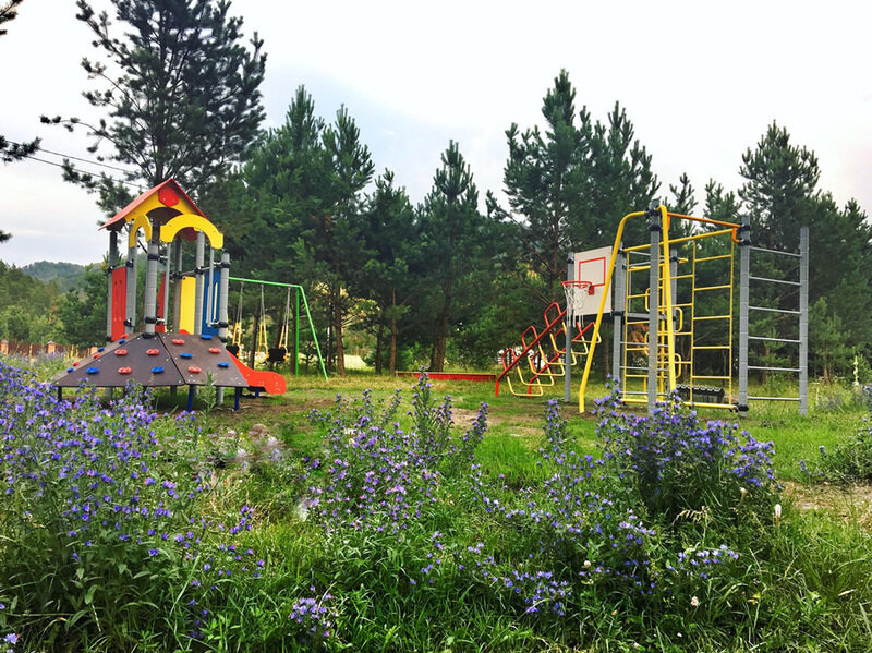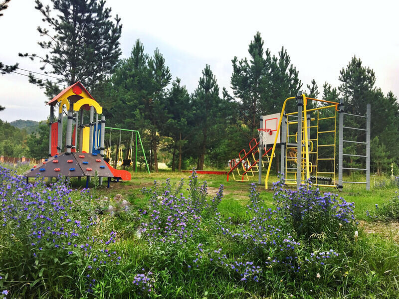 На базе отдыха появилась новая детская площадка для детей разного возраста.