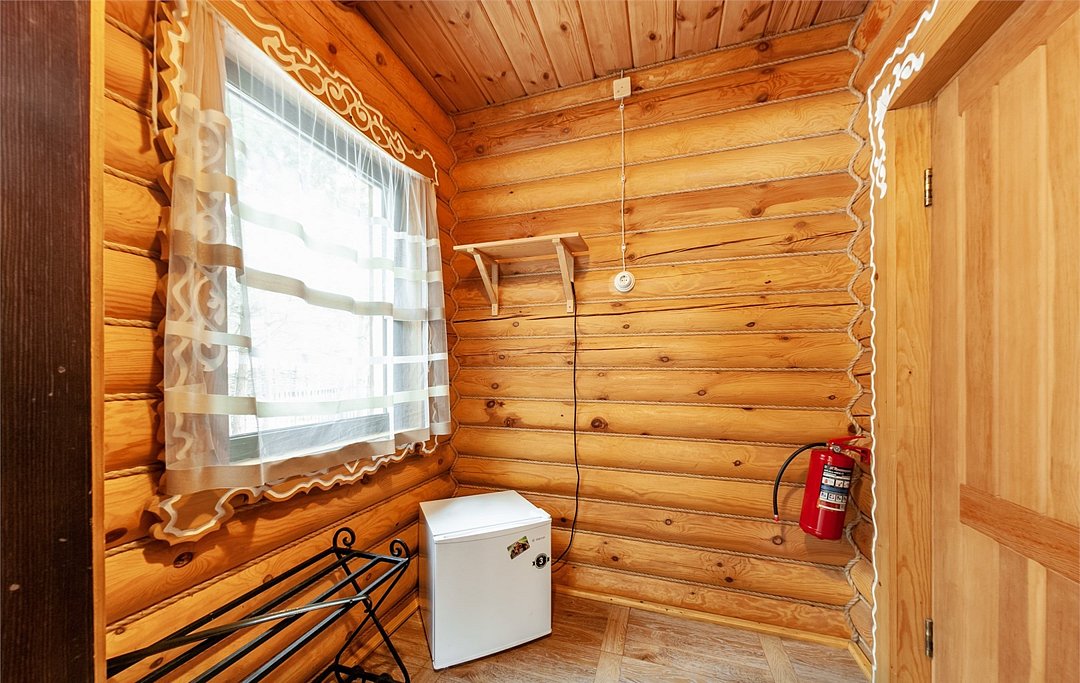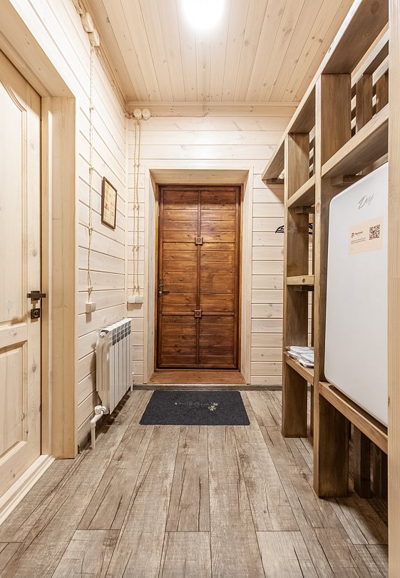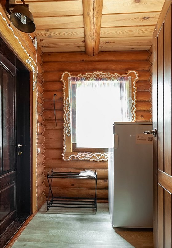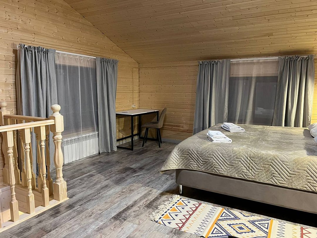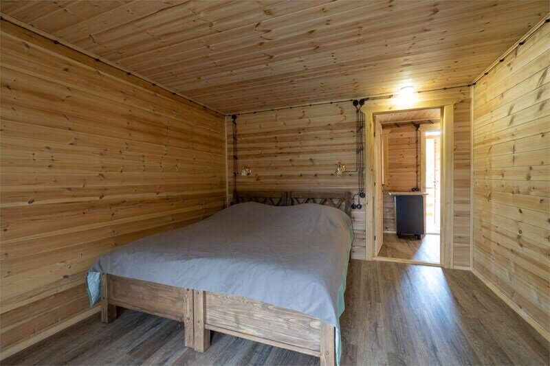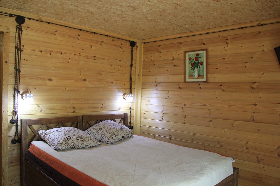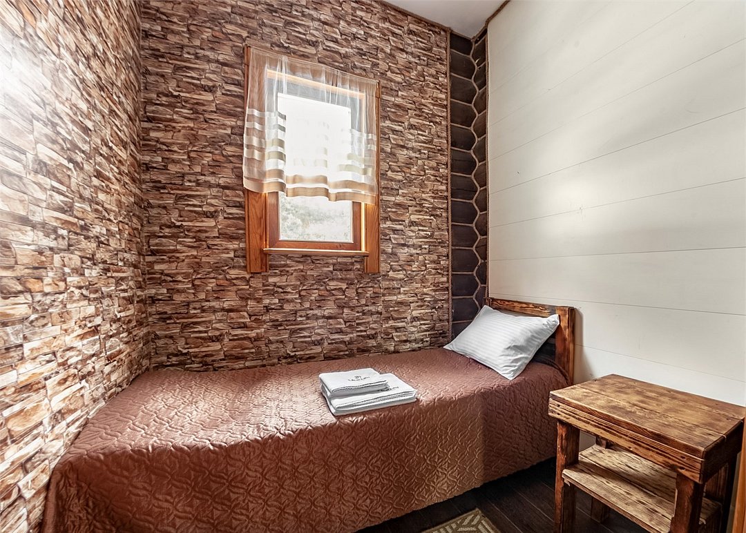Номер в отдельном доме из бруса, состоящий из одной жилой комнаты с одной кроватью, с полным санузлом, расcчитан на проживание одного\двух человек.