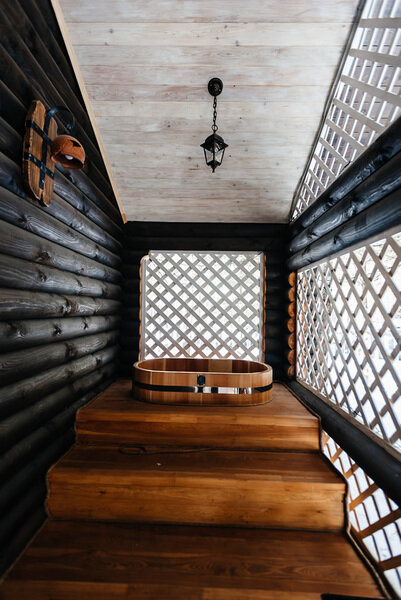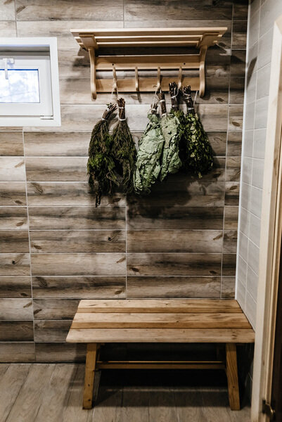 Инфраструктура: зона отдыха, шапочки, обливное ведро, душ, березовые веникиМинимальное время аренды: 2 часаБаня на березовых дровах с вениками: