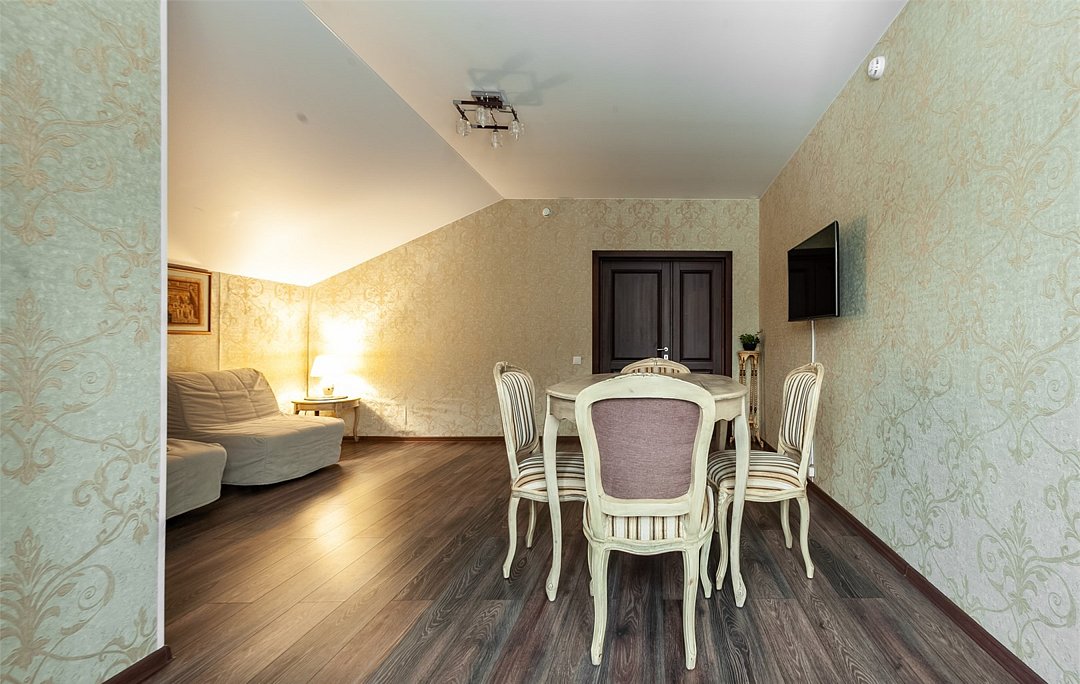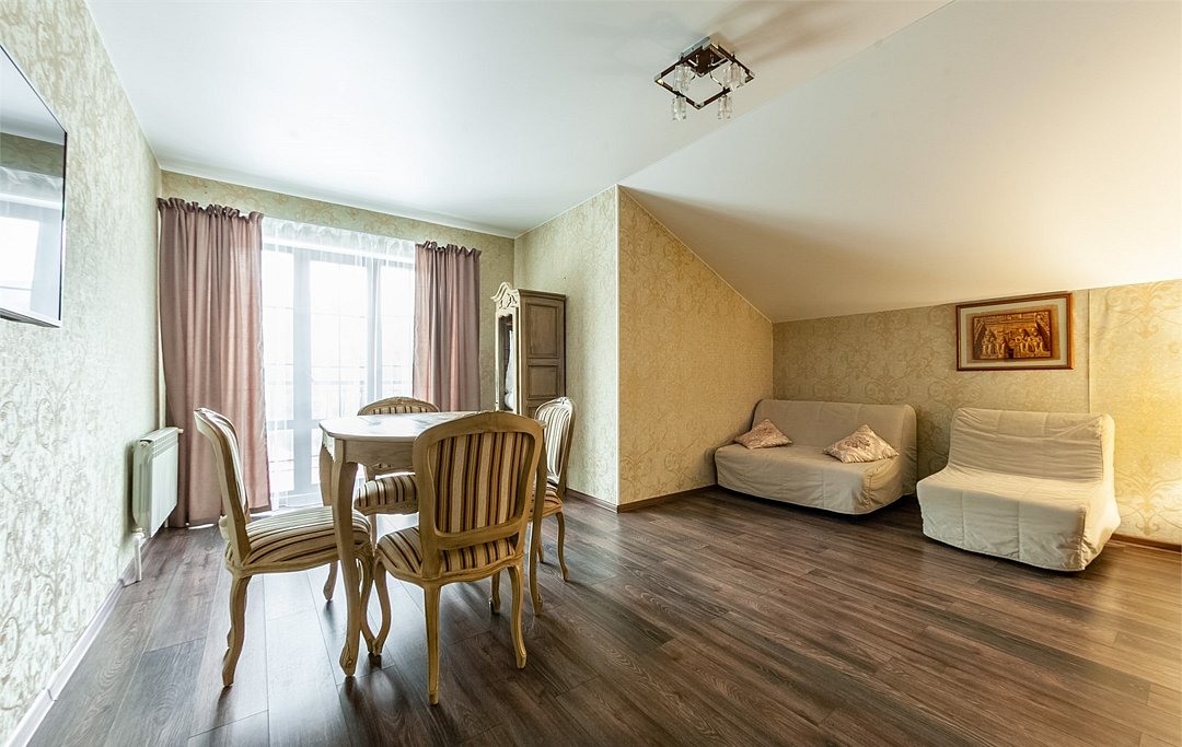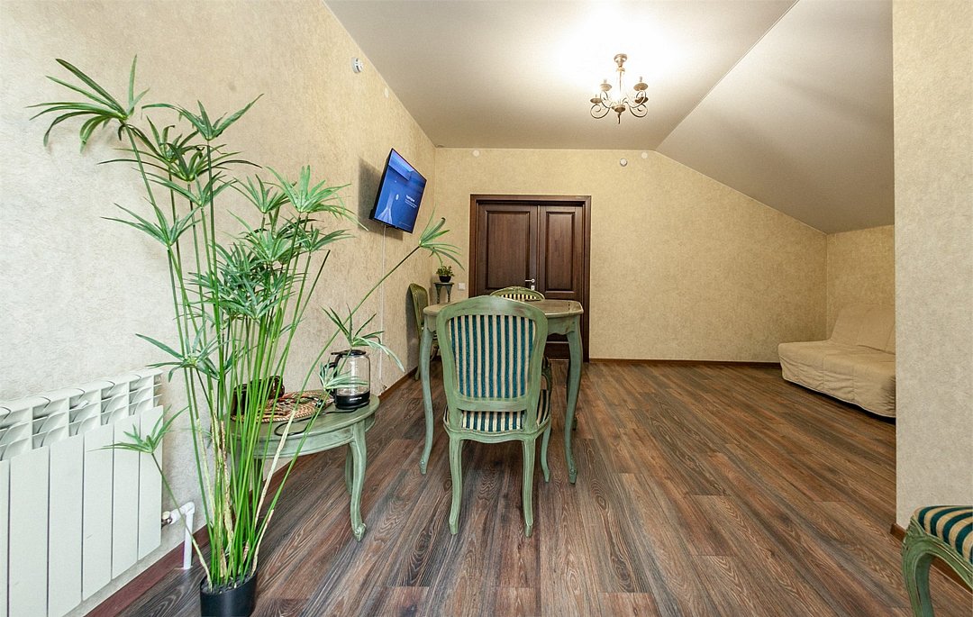 Номер в отдельном доме из бруса, состоящий из одной жилой комнаты с одной кроватью, с полным санузлом, рассчитан на проживание одного\двух человек.